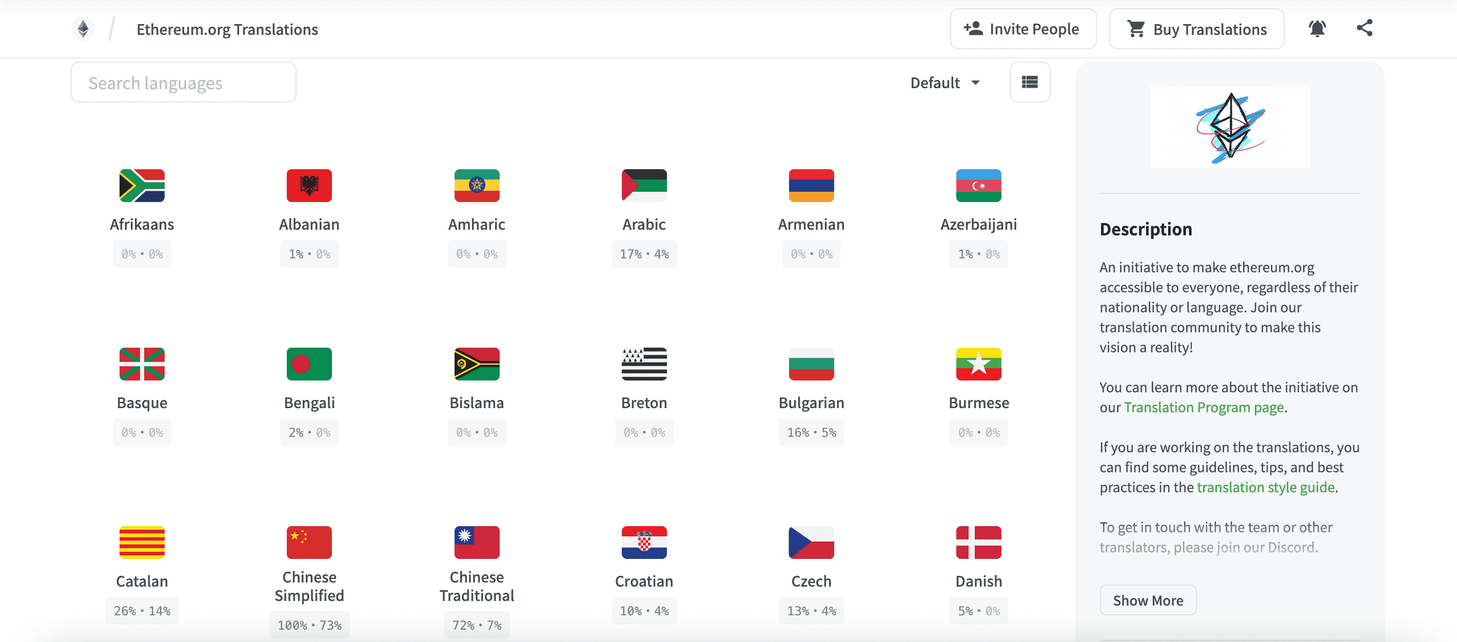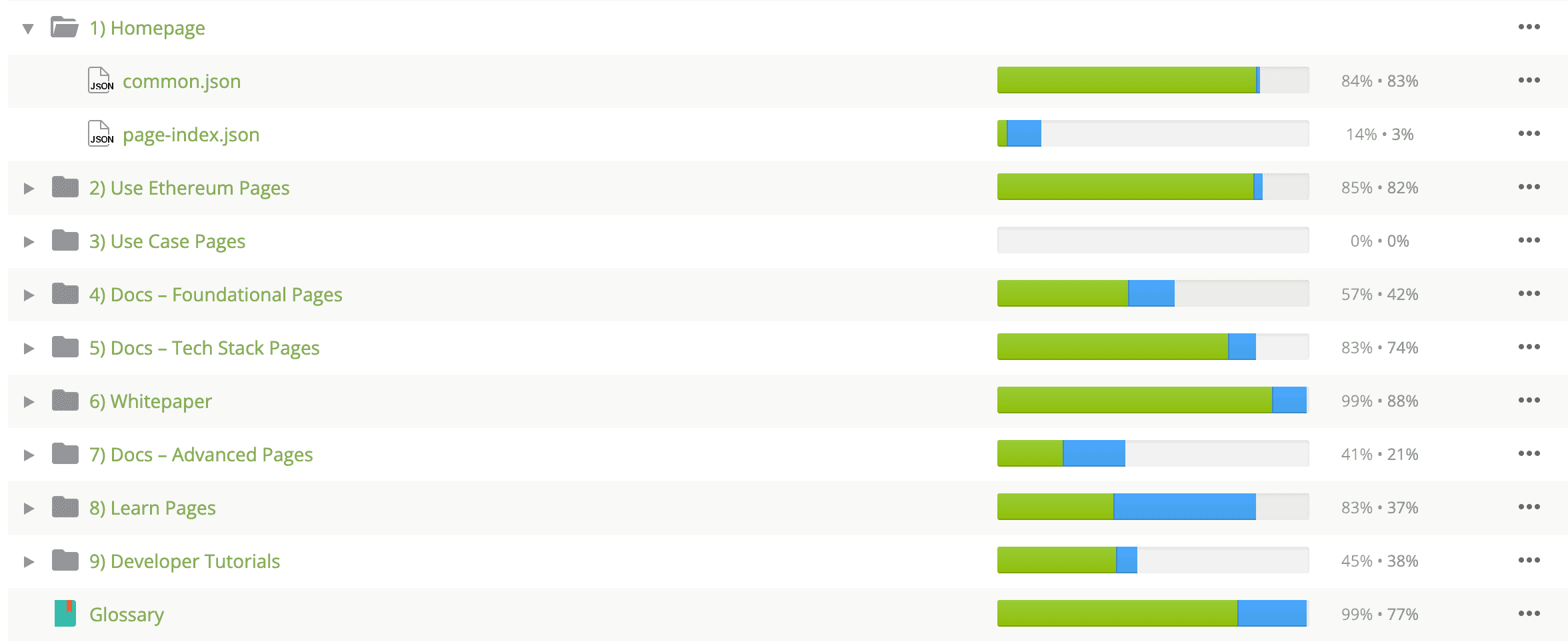 A note on content buckets: we use 'content buckets' within Crowdin to get the highest priority content released first. When you check out a language, for example,Β FilipinoΒ you'll see folders for content bucket ("1. Homepage", "2. Use Ethereum Pages", etc.).