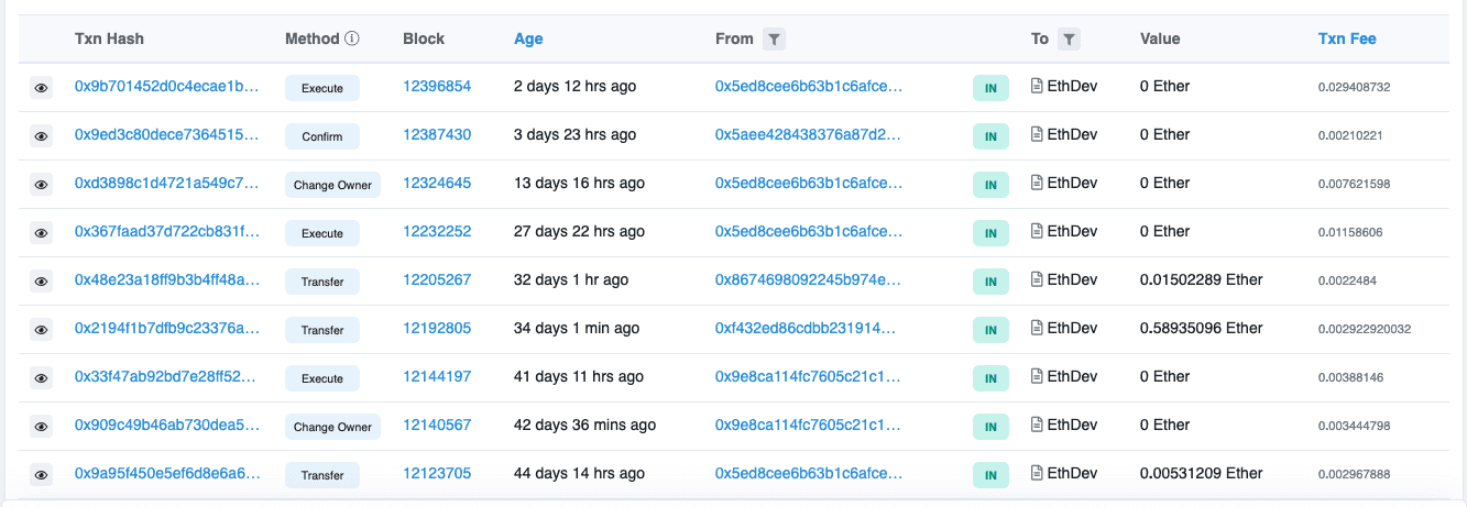 For reference, the smart contract account for the Ethereum Foundation (EF) can be viewed on Etherscan.