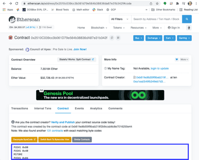 There are no secrets on the blockchain, everything that happens is consistent, verifiable, and publicly available. Ideally, contracts should have their source code published and verified on Etherscan. However, that is not always the case. In this article you learn how to reverse engineer contracts by looking at a contract without source code, 0x2510c039cc3b061d79e564b38836da87e31b342f.