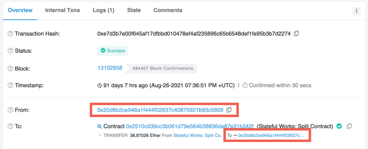 This function is very similar to claim above. It also checks a merkle proof, attempts to transfer ETH to the first, and produces the same type of log entry.