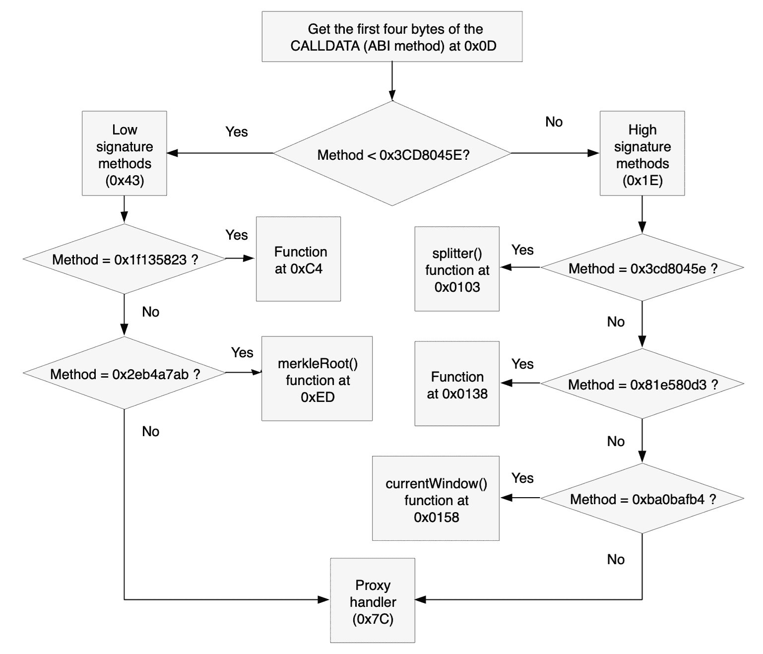 - The call data size is less than four (0x10-0x19 and 0xBE-0xC2)