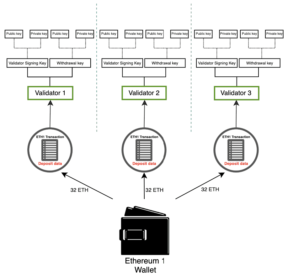 If every 32 ETH staked required a new set of 2 completely independent keys, key management would quickly become unwieldy, especially for users running multiple validators. Instead, multiple validator keys can be derived from a single common secret and storing that single secret allows access to multiple validator keys.