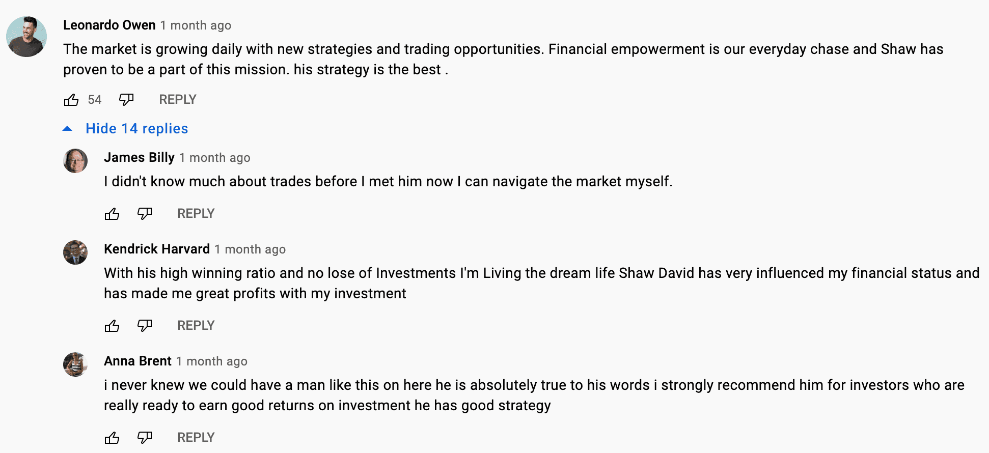 これらのブローカーを装う詐欺師達は、YouTube で偽のアカウントを使ってそのブローカーに関する何気ない会話を始め、ターゲットを探します。 これらの会話は正当性を高めるためしばしば高評価がつけられていますが、それらの高評価はすべてボットアカウントによるものです。