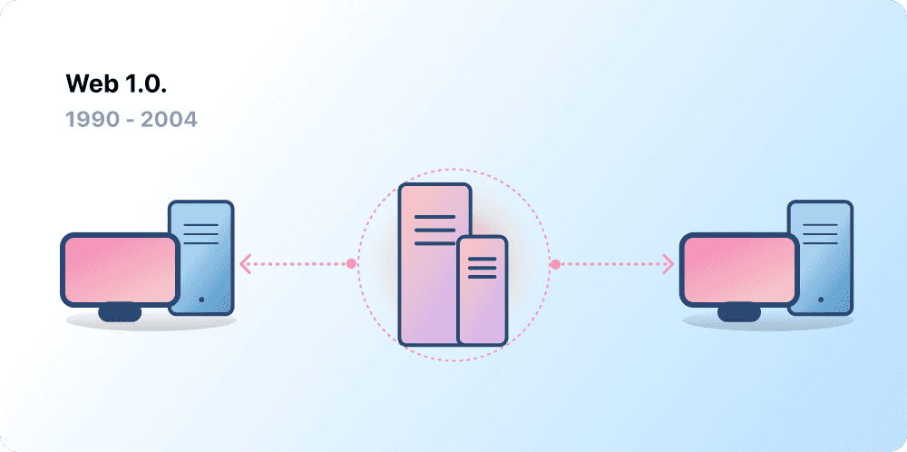 Berners-Lee が考案した、現在「Web1.0」と呼ばれている最初の創成期は、およそ 1990 年から 2004 年の間に起こりまし た。 Web1.0 は、企業が所有する静的な Web サイトが中心で、ユーザー同士の交流はほとんどなく、個人がコンテンツを制作することはほとんどなかったため、読み取り専用の Web として知られるようになりました。